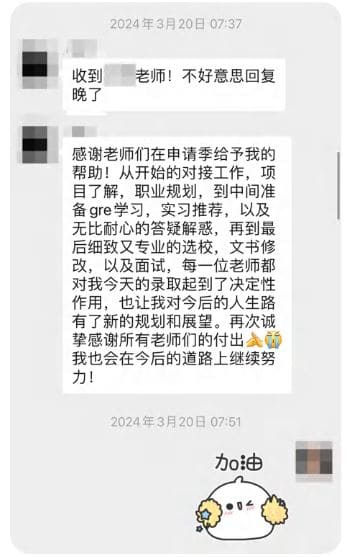 注重全方位成长 服务过程中融入个人成长指导,关注学生的综合提升,包括本科选课、本科转学、课外活 动、面试表现、职业规划与跨文化沟通能力等,而非仅限于录取结果。